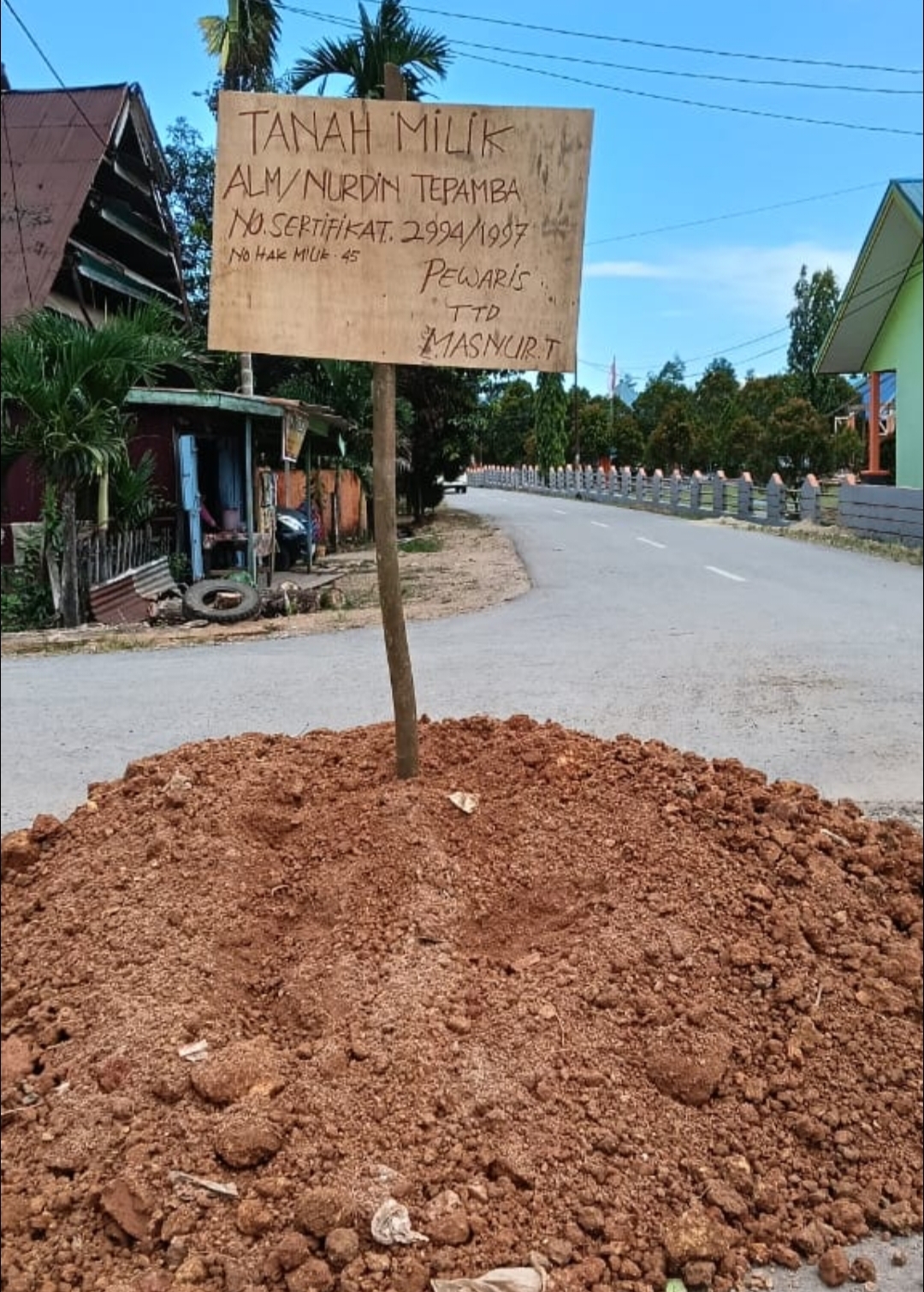 Tanah tersebut tercatat atas nama Alm. Nurdin Tepamba dengan Nomor Sertifikat 2994 dan Hak Milik No. 45, terbit tahun 1997. Menurut keterangan ahli waris, hingga saat ini belum ada ganti rugi yang dilakukan terhadap sisa tanah dengan luas sekitar 30 x 25 meter.