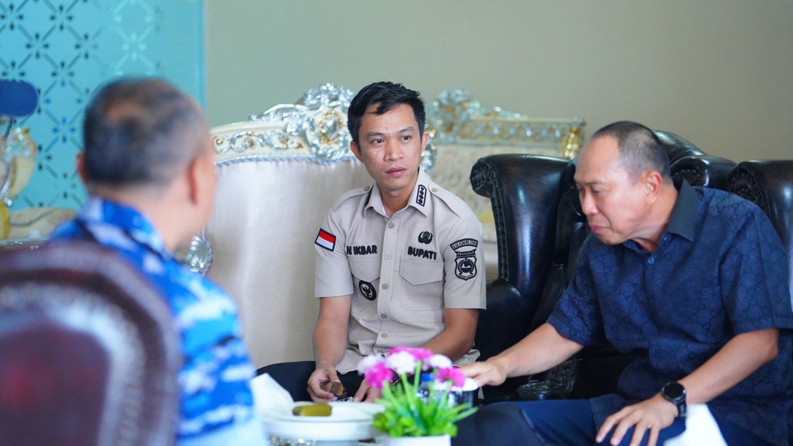Spiritsultra com,Konut – Bupati Konawe Utara, H. Ikbar, S.H., M.H., mendampingi Gubernur Sulawesi Tenggara, Mayjend TNI (Purn) Andi Sumanggeruka, dalam penyambutan Komandan Pusat Penerbangan Angkatan Darat (Puspenerbad), Mayjen TNI Zainuddin, bersama rombongan di Bandara Haluoleo Kendari, Kamis (18/09/2025).