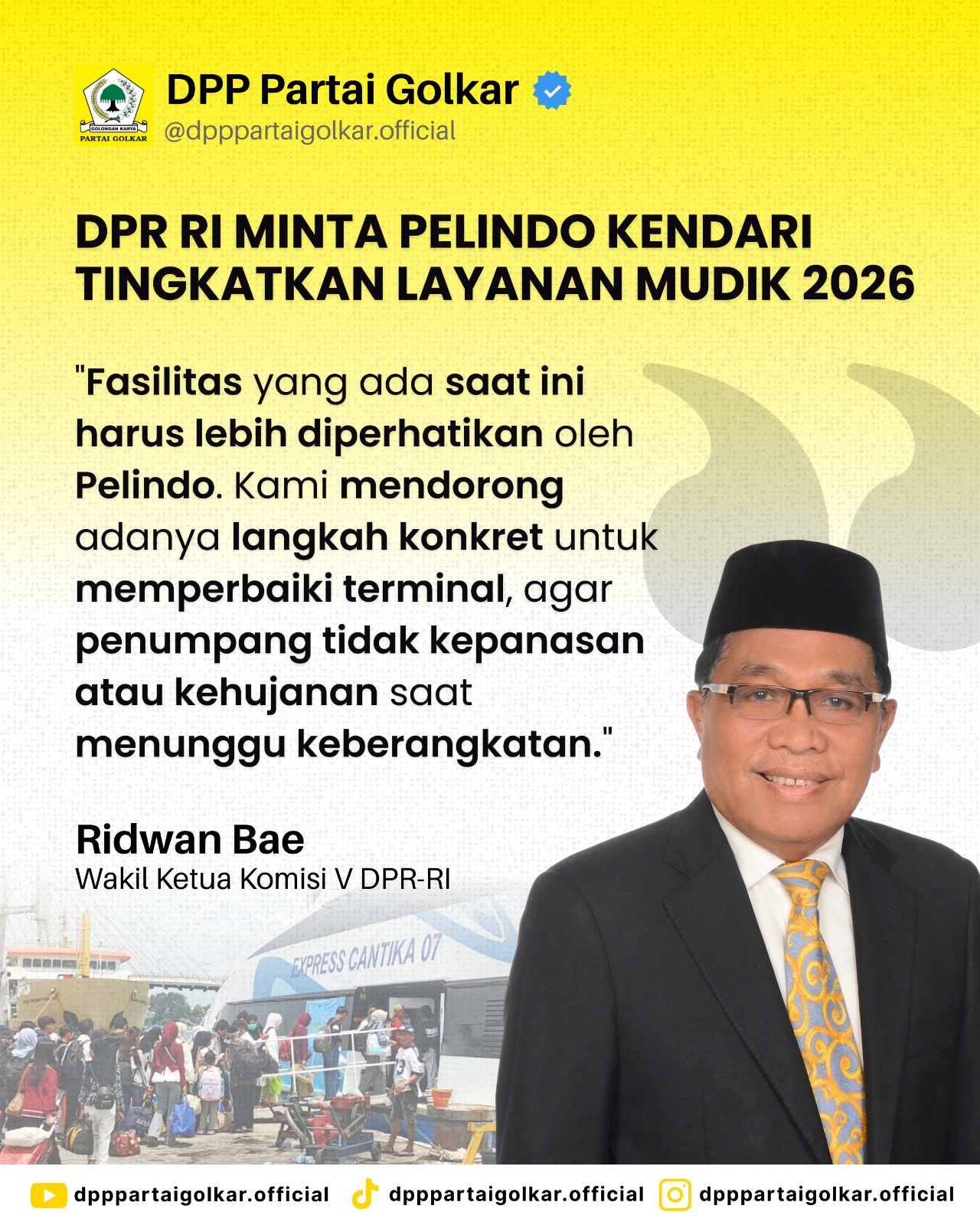 “Infrastruktur dan fasilitas pelayaran harus di perhatikan, kami mendorong adanya langkah konkret untuk memperbaiki terminal agar penumpang tidak kepanasan atau kehujanan saat menunggu keberangkatan,” ujar Ridwan Bae, Press rilis, Selasa (17/3/2026)