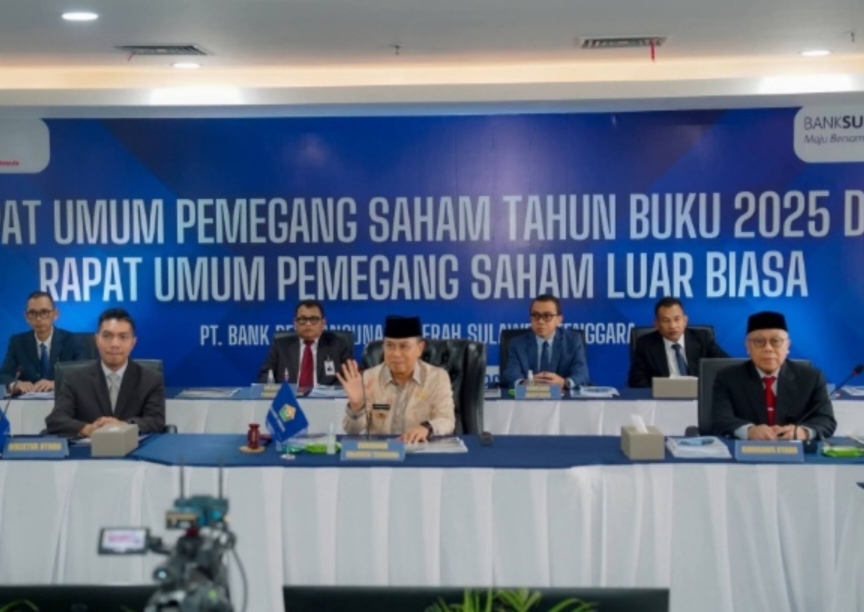Spiritsultra com Kendari – Suasana ruang rapat di Tower Bank Sultra, Kota Kendari, Jumat sore (13 Maret 2026) terasa penuh optimisme. Di hadapan para pemegang saham dan kepala daerah se-Sulawesi Tenggara, Gubernur Sultra Andi Sumangerukka menghadiri Rapat Umum Pemegang Saham (RUPS) Bank Sultra yang memaparkan capaian kinerja sepanjang tahun buku 2025