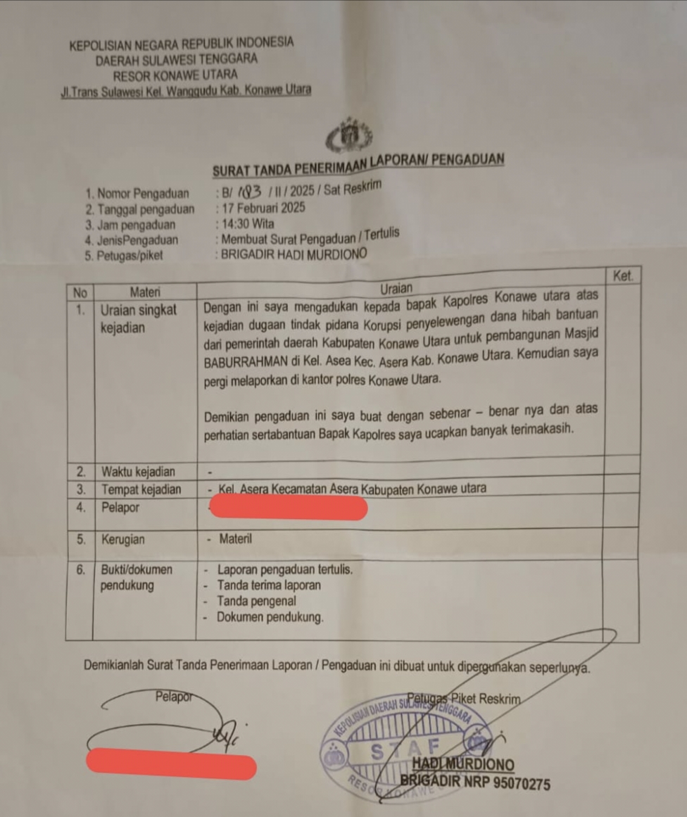 “Polres konawe utara harus segera melakukan langkah konkret dalam mengusut kasus tersebut. Entah kenapa Laporan terkait dugaan penyalahgunaan dana hibah Masjid ini pihak Polres sejauh ini masih adem adem saja, ini bukan soal jumlah uangnya, tapi soal kepercayaan. Jangan sampai kepercayaan masyarakat terhadap pemerintah dan sistem penegakan hukum terkikis karena kasus sperti ini,” Tegasnya