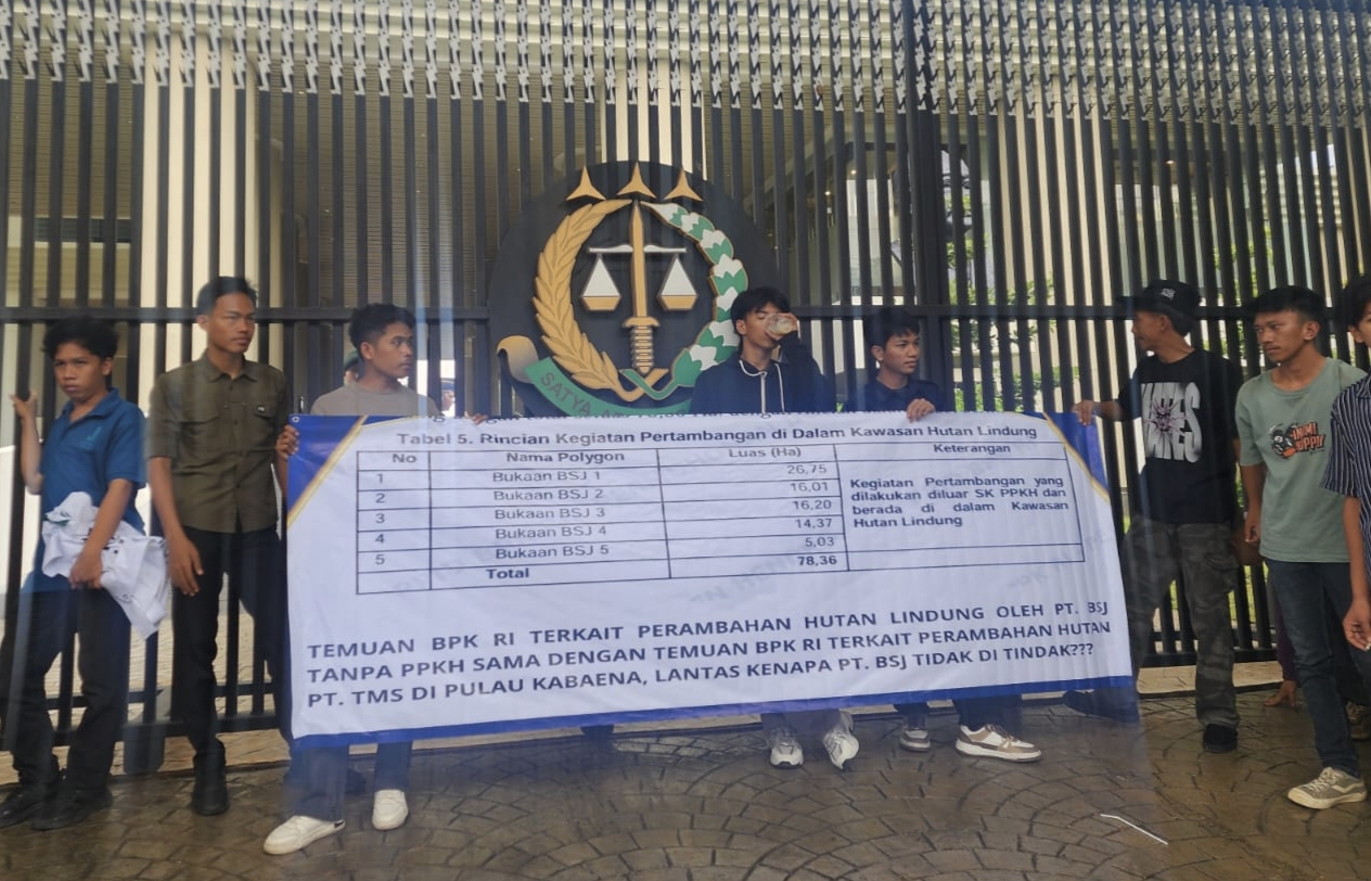 Oleh sebab itu, di depan perwakilan Kejaksaan Agung RI, pihaknya mendesak agar Kejaksaan Agung RI segera turun ke lokasi PT. Bumi Sentosa Jaya (BSJ) guna melakukan investigasi serta penindakan sebagaimana yang di lakukan oleh Satgas PKH di Pulau Kabaena beberapa waktu yang lalu.
